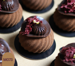 This masterpiece is a true showstopper — a velvety chocolate mousse cake with a surprise pistachio crunch center that bursts with nutty sweetness in every bite. Its elegant cocoa-dusted exterior is crowned with glossy chocolate spheres topped with delicate gold leaf, adding a luxurious touch. Each slice reveals layers of rich textures: airy mousse, tender sponge, and the irresistible crunch of pistachio hidden inside. Both visually stunning and decadently delicious, this cake is a celebration of chocolate artistry at its finest.