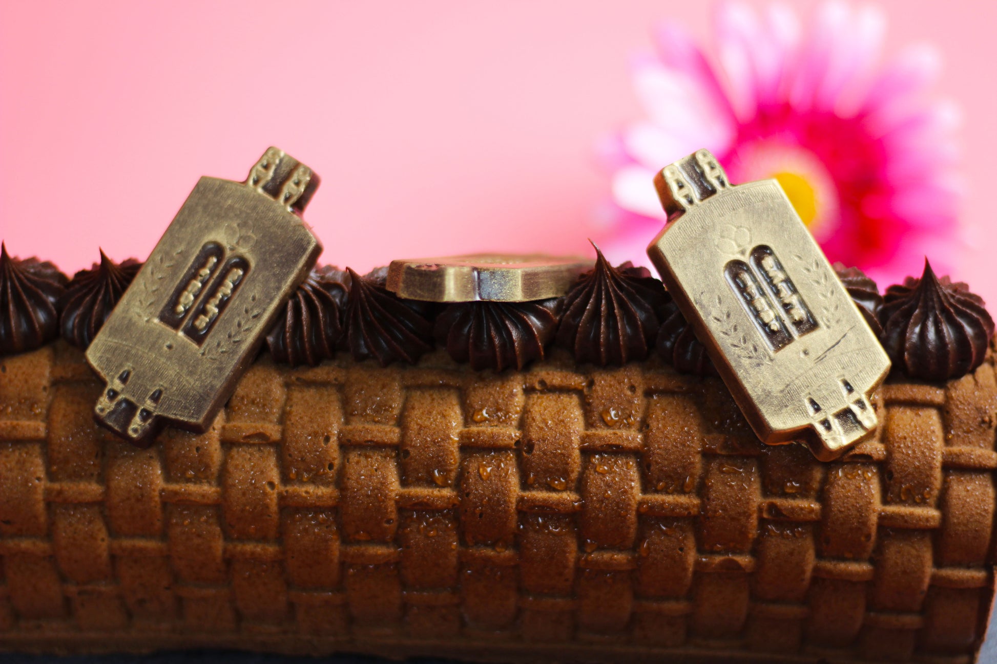 Step into a realm of classic opulence with The Chocolate Mousse Masterpiece. Within this log, a symphony of flavors beckons—rich chocolate cream, nougat, and tender cake layers intertwine to create an exquisite harmony. The log's exterior boasts a distinctive textured chocolate finish, crowned with a splendid artistic stunning chocolate golden torahs.