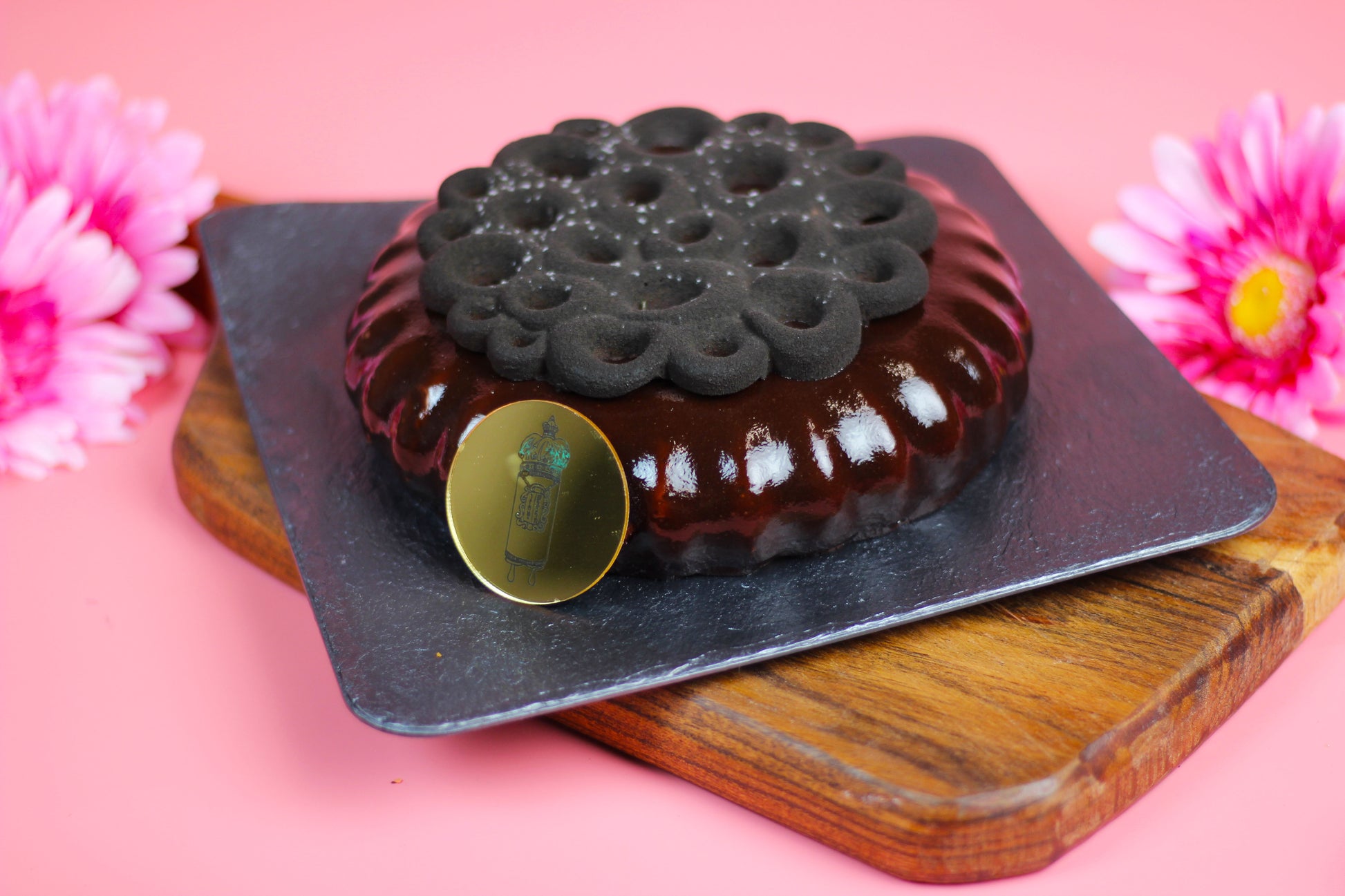 Within this cake, you'll discover layers of divine chocolate parve cheesecake, a luscious chocolate rosemary filling, and a light, fluffy chocoalte cake. The crowning touch is an elaborate design adorned with 24K edible gold, and a Torah medallion, all resting elegantly upon a glistening chocolate-colored foundation.