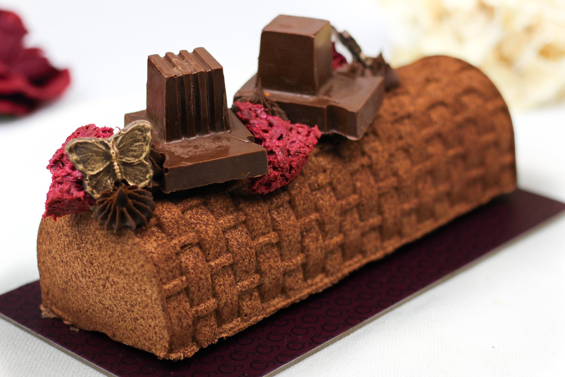 Our luxurious Chocolate Mousse Log is a true masterpiece—filled with rich chocolate cream, smooth nougat, and soft, delicate cake for the perfect bite every time. The exterior features a stunning textured chocolate finish that adds elegance and depth.